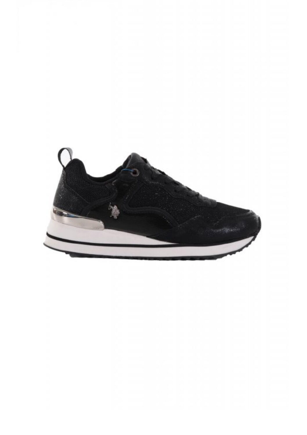 Γυναικεία sneakers από την εταιρεία U.S. Polo Assn, σε μαύροχρώμα, από τεχνόδερμα και ύφασμα με μαλακό πάτο και αντιολισθητική σόλα. Τακούνι: 4cm